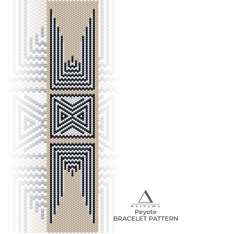 The design is based on clean geometry and repeating elements that form a decorative, well-balanced bracelet. This pattern is intended for makers with prior experience in peyote stitch and who are comfortable working with detailed bead charts.